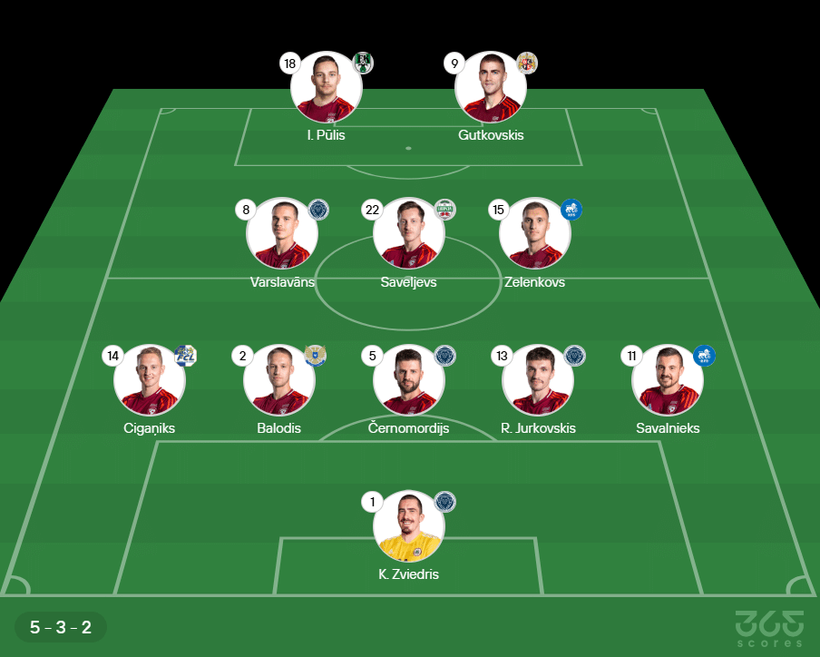 - Provável escalação da Letônia: Zviedris, Ciganiks, Balodis, Cernomordijs, Jurkovskis e Savalnieks; Varslavans, Saveljevs e Zelenkovs; Pulis e Gutkovskis