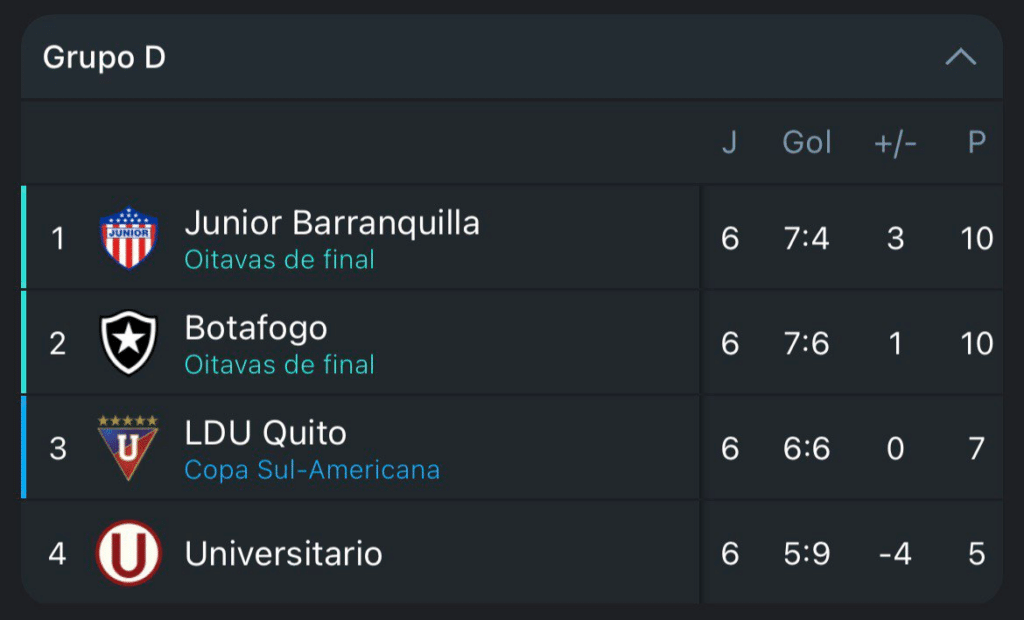 Em alguns grupos, faltavam definir a posição na tabela. As equipes de Zubeldía e de Fernando Diniz venceram e garantiram a primeira colocação de seus grupos. Por sua vez, o Botafogo empatou com o Junior Barranquilla e ficou com o segundo lugar.