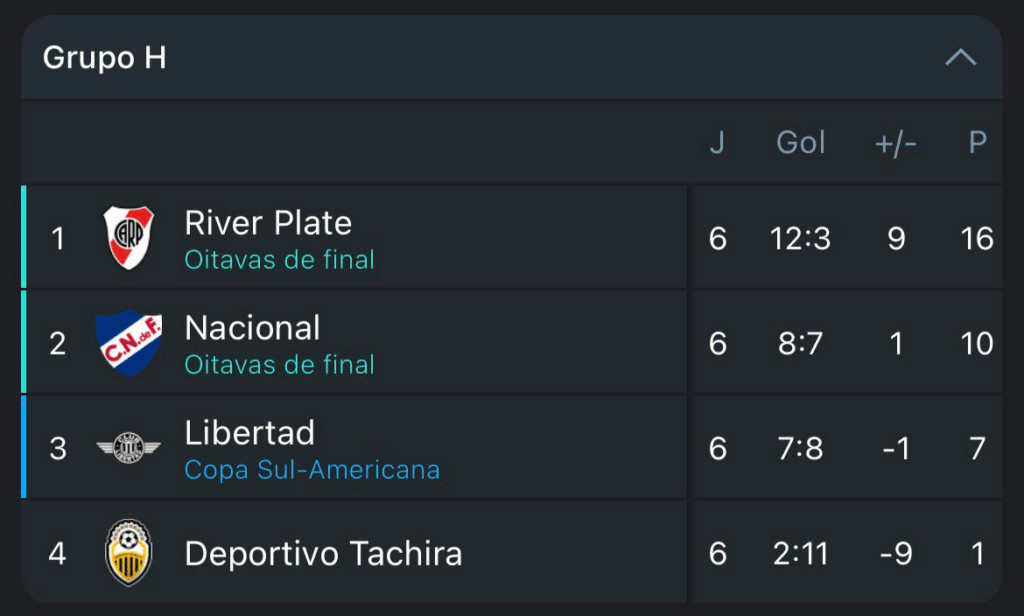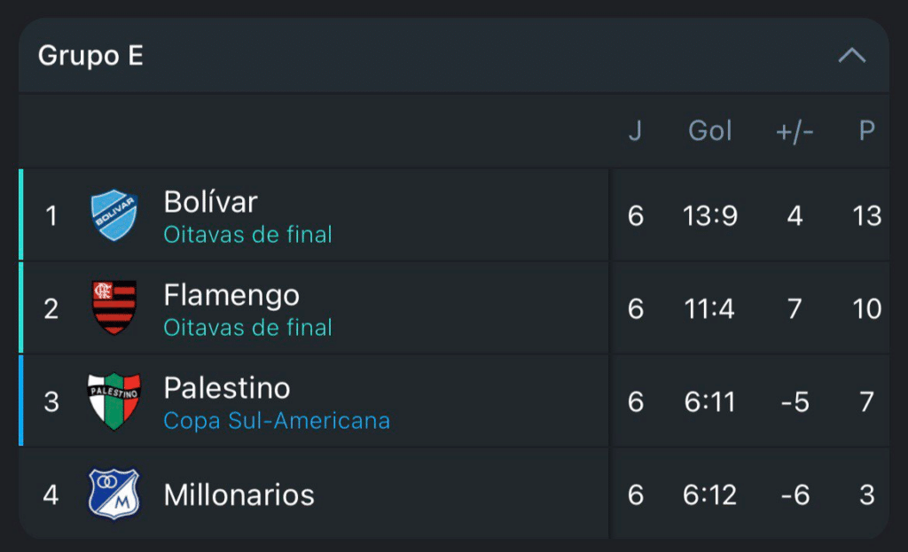 A sexta e última rodada da fase de grupos da Libertadores terminou nesta quinta-feira (30). Junto com ela, a competição conheceu seus últimos classificados para as oitavas de final. O Flamengo, que precisava da vitória, venceu o Millonarios por 3 a 0 e garantiu vaga na próxima fase.