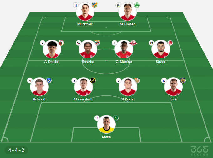 Provável escalação de Luxemburgo: Moris, Jans, Korac, Mahmutovic, Bohnert; Martins, Barreiro, Sinani, Dardari; Olesen, Muratovic. Técnico: Jeff Strasser