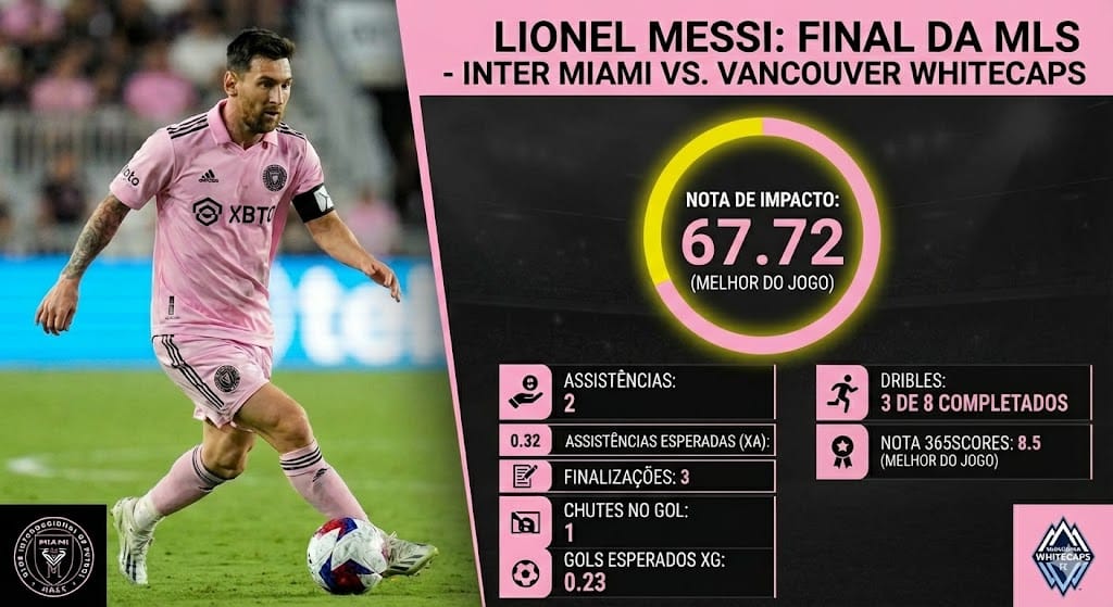 Demorou mais de dois anos, mas Lionel Messi finalmente conseguiu levar o Inter Miami ao tão esperado título da MLS. No sábado, a equipe não teve dificuldades em vencer o Vancouver Whitecaps por 3 a 1 para confirmar a conquista. Como o esperado, Messi foi o grande destaque da noite.