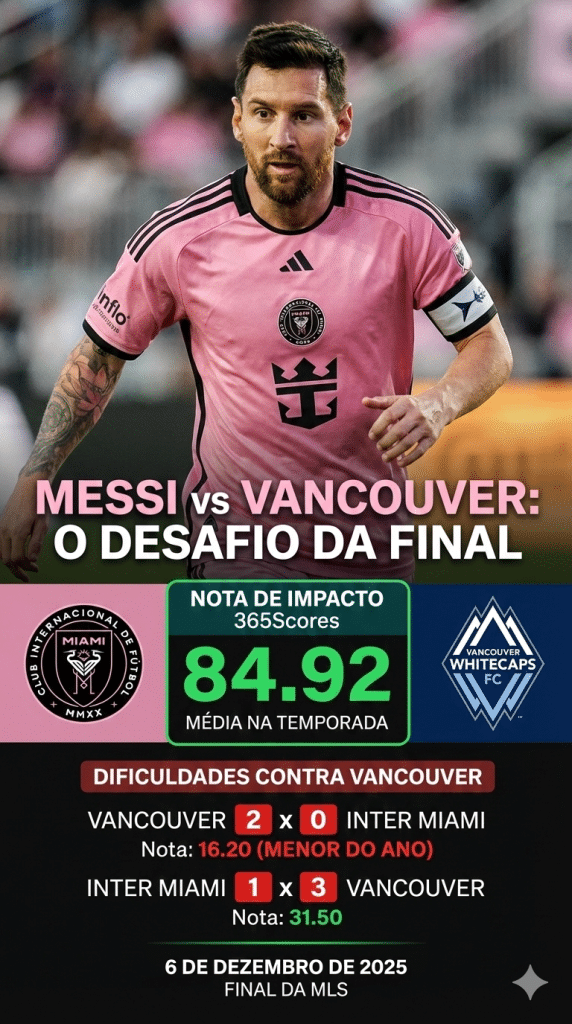 Lionel Messi tem neste sábado (6) o maior desafio desde que chegou ao Inter Miami: a final da MLS contra o Vancouver Whitecaps. Só que, além da pressão pela taça inédita, o argentino também precisará superar um verdadeiro “calcanhar de Aquiles”.