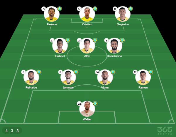 - Provável escalação do Mirassol: Walter; Ramon, Victor, Jemmes, Reinaldo; Danielzinho, Aldo, Gabriel; Negueba, Alesson, Cristian