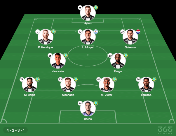 - Provável escalação do Ceará: Bruno; Fabiano, M. Victor, Machado, M. Bahia; Diego, Zanocelo, Lucas Mugni; Galeano, P Henrique, Aylon