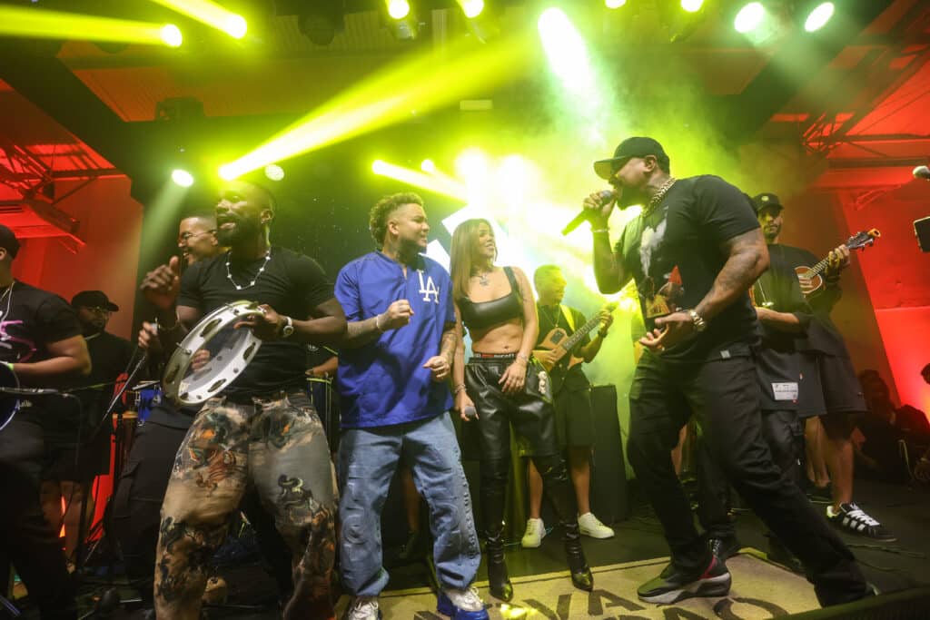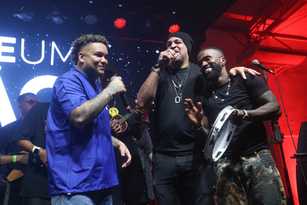 A festa foi comandada por ícones da música, como L7, MC Maneirinho e Suel. Naldo Benny e Tonzão, do Hawaianos, também subiram ao palco para agitar os convidados. Outra figura ilustre que se arriscou no vocal foi Adriano Imperador a convite de Suel e Negrete. Veja as fotos: