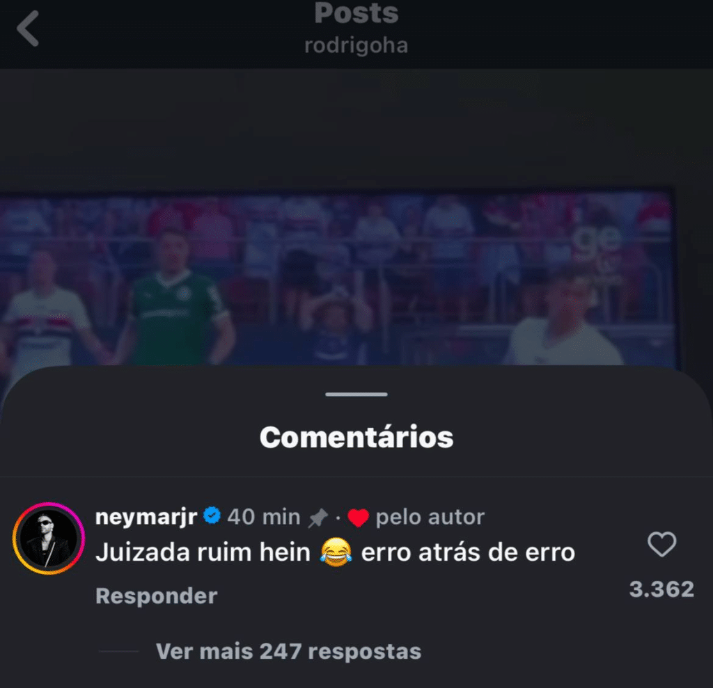 “Juizada ruim, heim. Erro atrás de erro”, escreveu Neymar no comentário do posta do atleta campeão mundial pela Seleção.