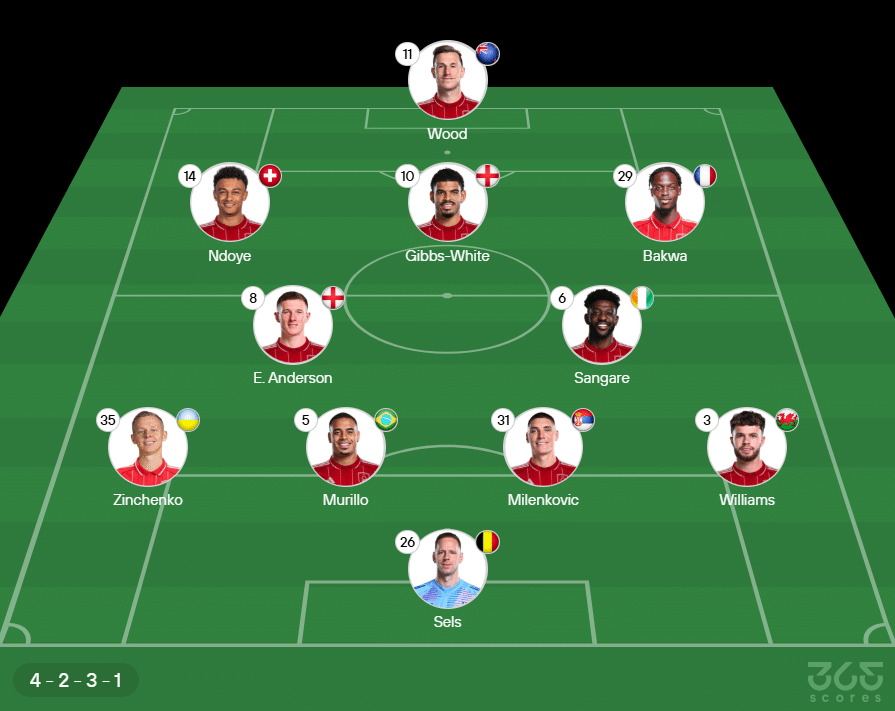 - Provável escalação do Nottingham Forest: Sels, Zinchenko, Murillo, Milenkovic e Neco Williams; Elliot Anderson, Sangare, Ndoye, Gibbs-White e Bakwa; Chris Wood