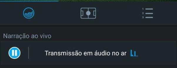 Ao entrar nos seus jogos favoritos, você terá a opção de clicar no botão de play em Transmissão em áudio no ar. Muito em breve, você terá a opção de ver o ícone de um microfone em MEUS JOGOS sempre que o recurso da narração estiver disponível. Se ainda não estiver rolando a transmissão, você será informado do horário de início.