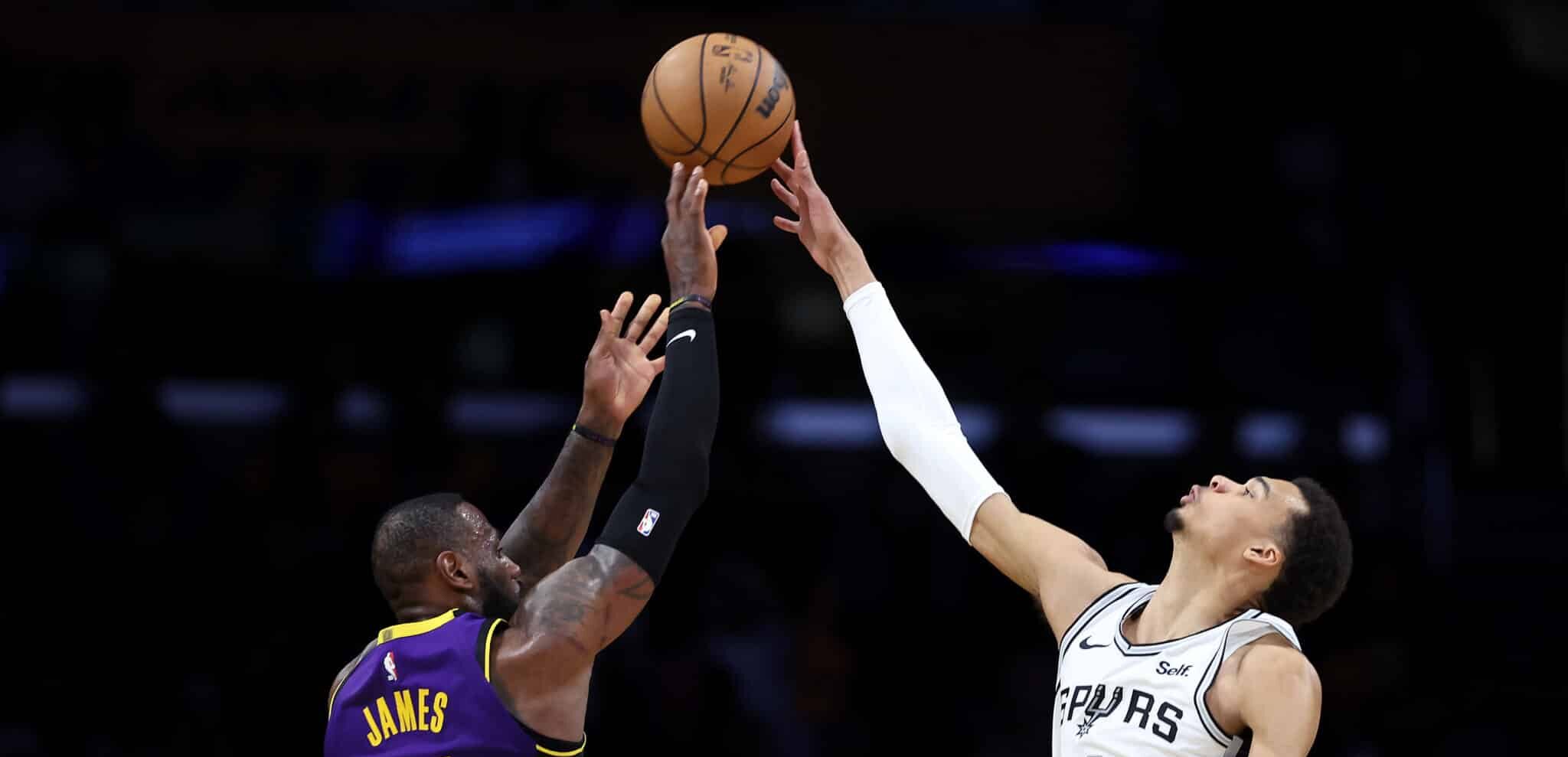 Após o confronto entre Lakers x Spurs, LeBron James, lenda da NBA, exaltou a performance de Victor Wembanyama, um dos jogadores mais “hypados” do momento. Na entrevista, o camisa 23 do time da Califórnia enalteceu a evolução do francês. Leia!