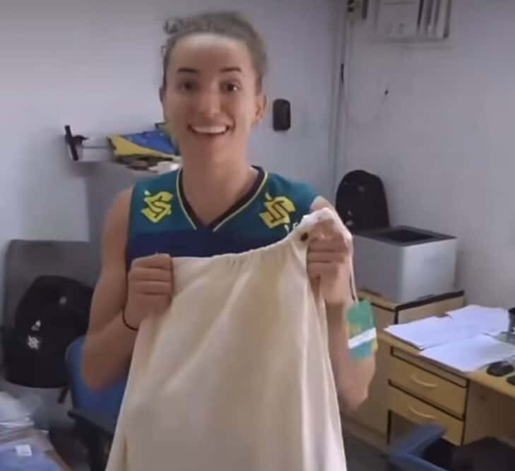 “Chegaram nossos uniformes das Olimpíadas. Chegou… Vamos fazer um recebidos? Um unboxing?“, ironizou Thaísa nas redes sociais acompanhada de Gabi Guimarães. Ela também colocou um emoji retratando a decepção com o kit recebido.