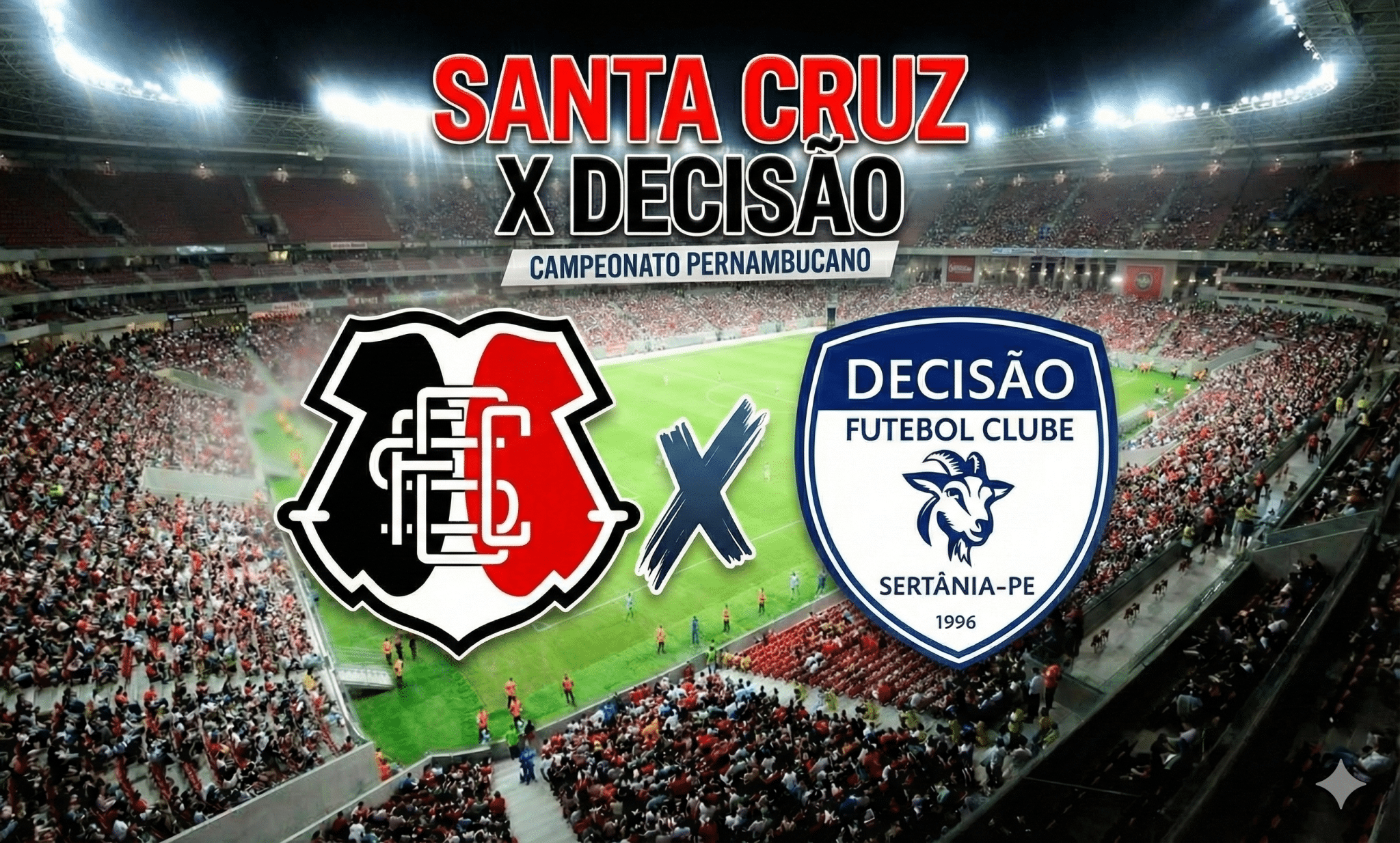 O Santa Cruz entra em campo neste domingo, 08/02, às 18h, para enfrentar o Decisão em partida válida pelo jogo de volta da segunda fase do Campeonato Pernambucano 2026. Na ida, o Tricolor de Aço venceu por 2 a 1.