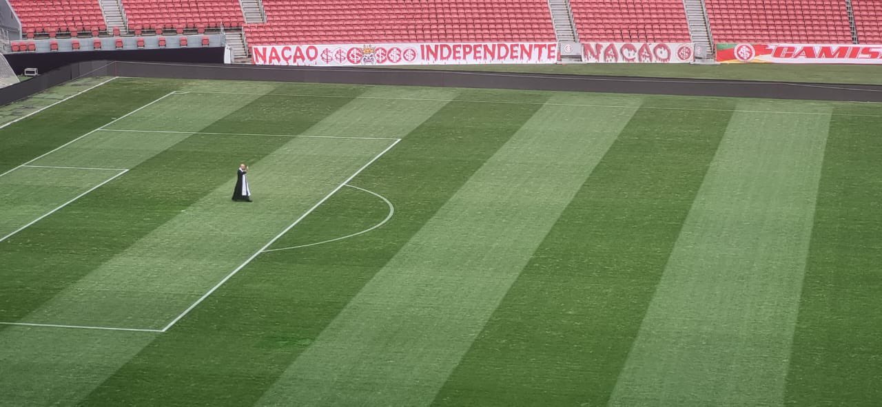 Padre é visto rezando gramado do Beira-Rio às vésperas de jogo contra o Fluminense