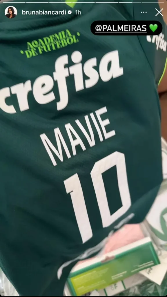 Os presentes foram enviados para Bruna Biancardi, mãe da criança, e torcedora declarada do clube alviverde. A namorada de Neymar publicou imagens do presente nas redes sociais.
