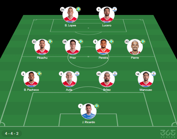 - Provável escalação do Fortaleza: João Ricardo; Mancuso, Britez, Avila, B. Pacheco; Pierre, Pereira, Prior, Pikachu; Lucero, B. Lopes