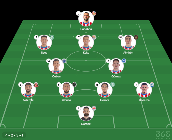 - Provável escalação do Paraguai: Coronel; Caceres, Gómez, Alonso, Alderete; Gómez, Cubas, Kaku; Almirón, Sosa, Sanabria