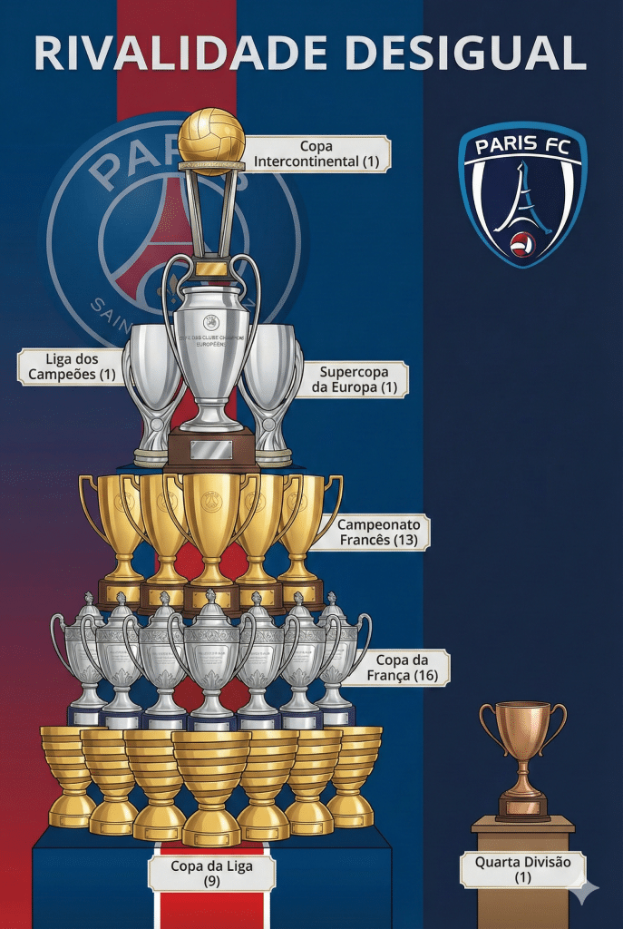 Acostumado a grandes espetáculos, o Parque dos Príncipes vai receber neste domingo (4), às 16h45 (de Brasília), um jogo histórico. Pela 17ª rodada da Ligue 1, o futebol francês testemunhará um duelo que parecia impossível por décadas: um confronto oficial entre Paris Saint-Germain e Paris FC.