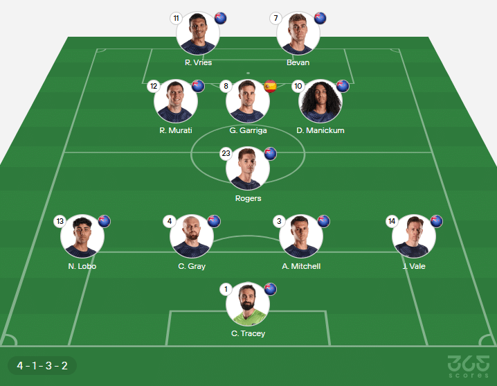 - Provável escalação do Auckland City: Tracey, Vale, Mitchell, Gray, Lobo; Rogers, Manickum, Garriga, Murati; Bevan, Vries