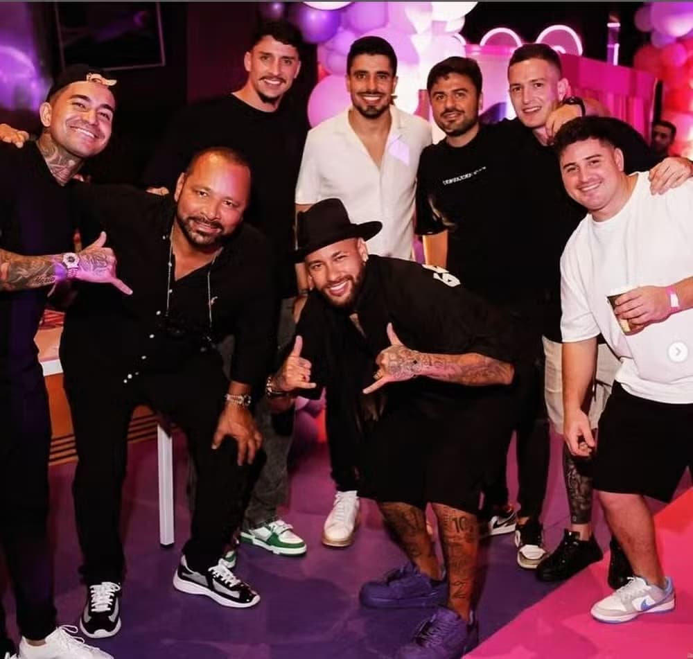 O uruguaio, inclusive, esteve presente na festa de aniversário de Rafaella, em São Paulo, na noite da última segunda-feira (11). Ele foi um dos convidados para o evento que contou apenas com amigos e familiares. Neymar esteve presente, assim como Dudu e Aníbal Moreno.
