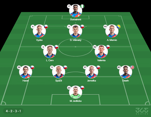 Provável escalação do Viktoria Plzen: Jedicka; Havel, Spáčil, Jemelka e Dweh; Cerv e Valenta; Vydra, Visinsky e Memic; Duroainmi. Técnico: Marek Bakoa.