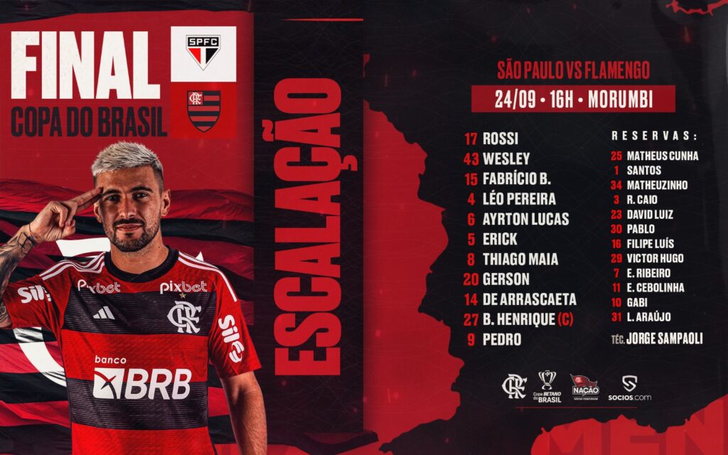 Após perder o primeiro jogo por 1 a 0, o Flamengo vai para o tudo ou nada contra o São Paulo neste domingo (24), no Morumbi, em busca do título da Copa do Brasil. Uma das notícias que geram expectativas na torcida rubro-negra é a volta do meia Arrascaeta ao time titular.