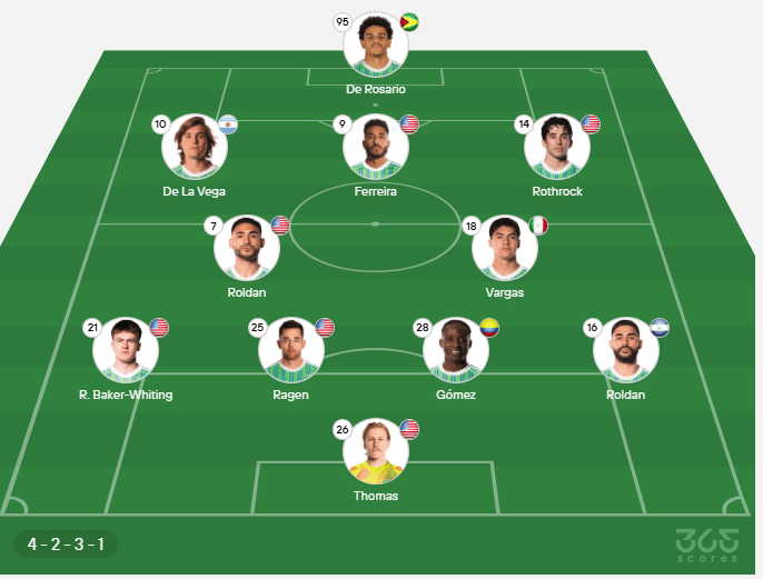 - Provável escalação do Seattle Sounders: Thomas, Roldan, Gómez, Ragen, Baker-Whiting; Vargas, Roldan, Rothrock, De La Vega, Ferreira; De Rosario