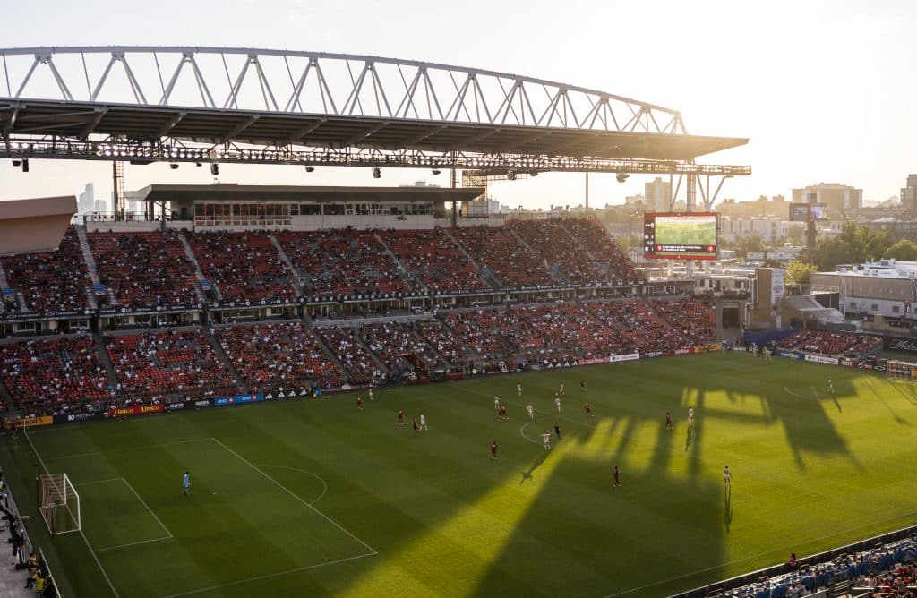 O BMO Field já é a casa do Toronto FC (MLS) e tem uma atmosfera vibrante por ser um estádio mais “fechado”, aproximando a torcida do campo.