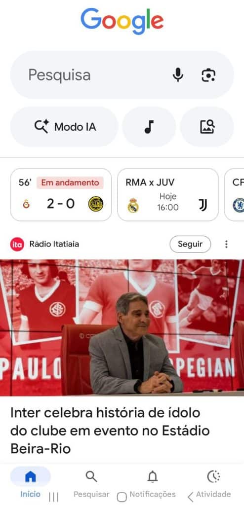 É possível, portanto, passar a seguir o 365Scores no Google Discover, e receber nossas notícias pelo aplicativo do Google – além, claro, do próprio app do 365Scores.