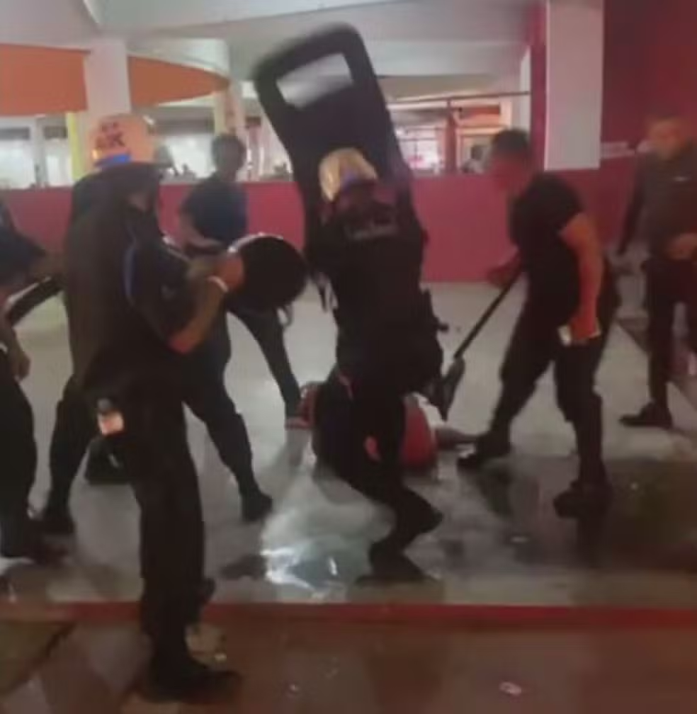 O empate entre Náutico e CRB no último domingo (24), pela Copa do Nordeste, teve cenas de confrontos na sede dos Aflitos entre torcedores e seguranças do clube. Em imagens que circulam nas redes sociais, é possível ver um fã alvirrubro sozinho no chão e sendo acertado com força por um escudo, que quebra na hora do impacto.