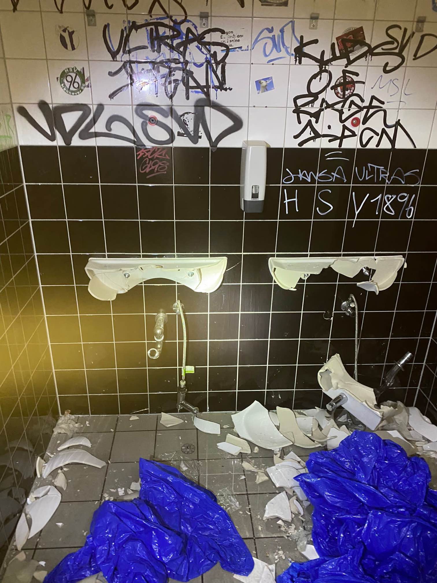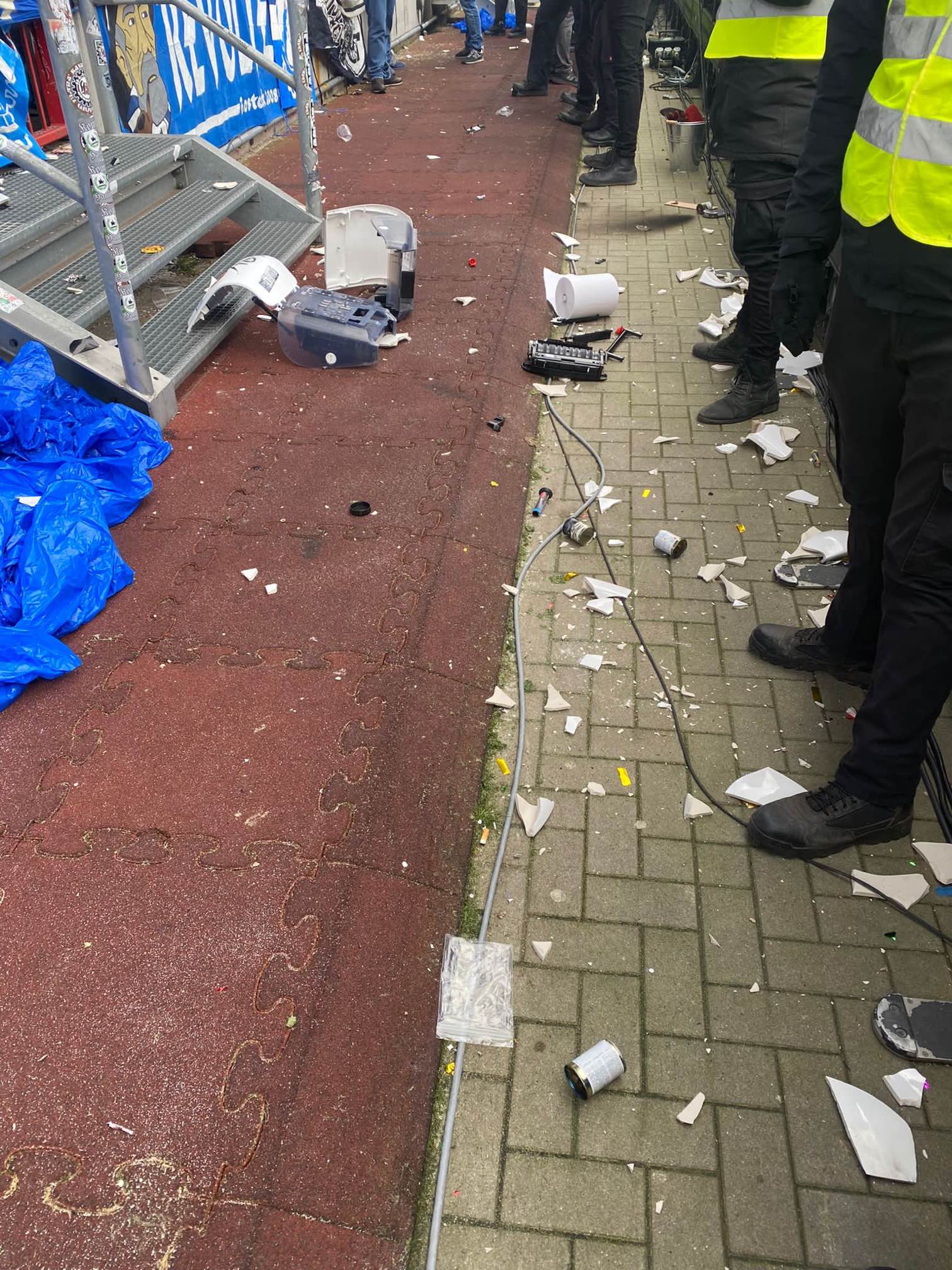 Segundo o St. Pauli, uma pessoa ainda foi atingida por um pedaço de cerâmica – parte da torcida visitante, vale dizer, teria destruído o banheiro do estádio.