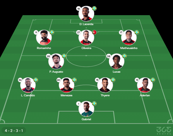 - Provável escalação do Sport: Gabriel; Aderlan, Thyere, Menezes, L. Candido; Lucas, P. Augusto, Oliveira; Matheusinho, Romarinho, D. Lacerda