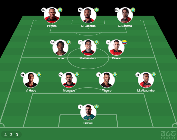• Provável escalação do Sport: Gabriel; M. Alexandre, Thyere, Menezes, V. Hugo; Rivera, Matheuzinho, Lucas; C. Barletta, Pereira, D. Lacerda