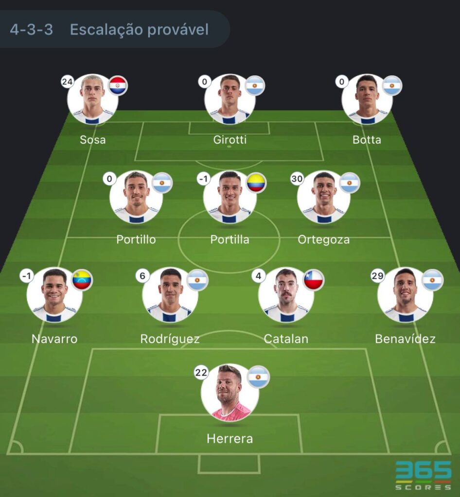 Provável escalação do Talleres: Guido Herrera; Benavidez, Navarro, Catalán, Rodríguez, Portilla, Ortegoza, Portillo, Girotti, Botta, Sosa.