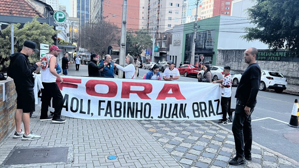 “Quadrilha da bola: Braz, Spindel e Bertolucci“, “Fora Sampaoli, Fabinho, Juan e Braz“, “Landim = Bandeira. Cúmplice e omisso“, diziam as faixas estendidas pelos torcedores presentes. No domingo, o Rubro-Negro visita o Coritiba pela 20ª rodada do Campeonato Brasileiro.
