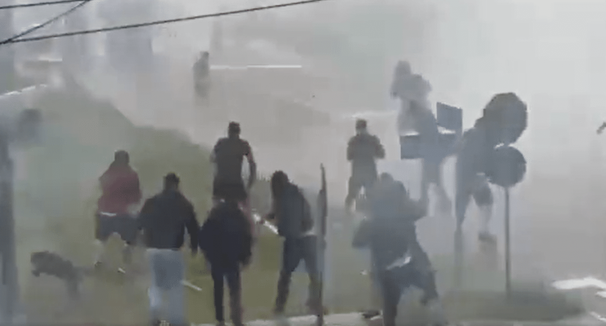 Nas imagens é possível ver o confronto entre os torcedores, que arremessavam pedras e também portavam pás e pedaços de madeira.
