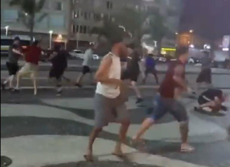 Com isso, nesta madrugada, acabou havendo brigas em Copacabana, na Zona Sul, entre a torcida rubro-negra e a Decano. No vídeo, é possível ver o uso de pedaços de pau, cadeiras e mesas para agressões.