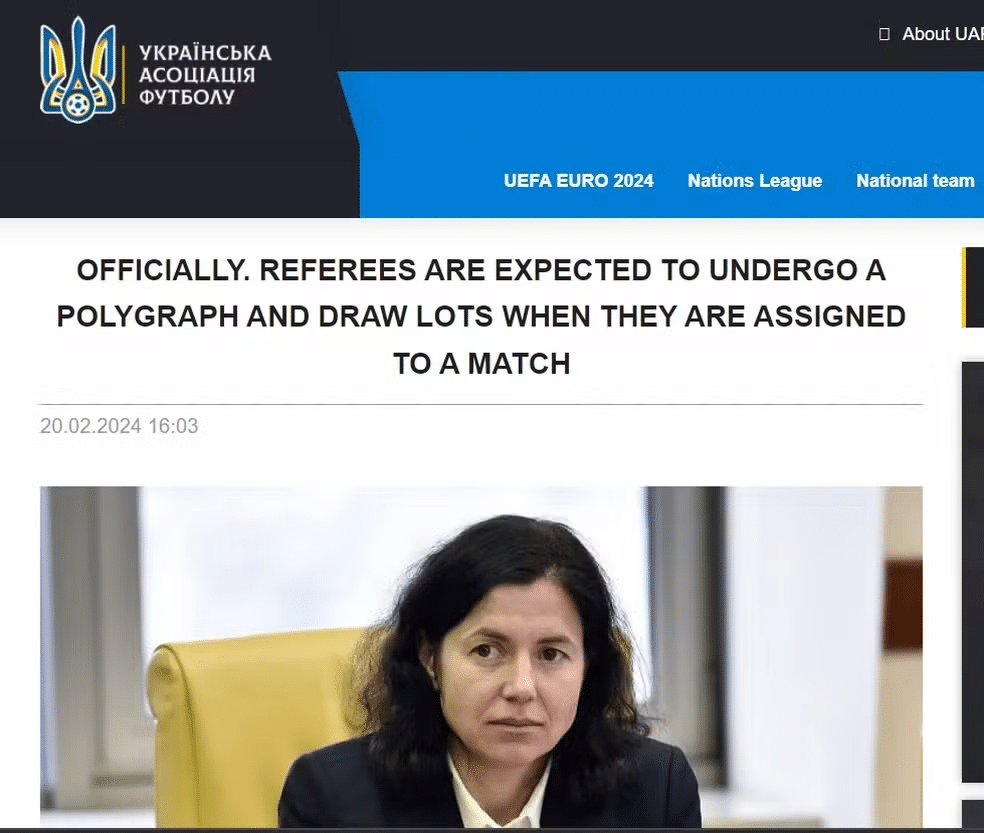 A Federação Ucraniana de Futebol anunciou nesta terça-feira que os árbitros do futebol nacional serão submetidos a um detector de mentiras (polígrafo) antes dos jogos. A ideia da entidade é diminuir as reclamações de decisões dos juízes e possíveis casos de corrupção.