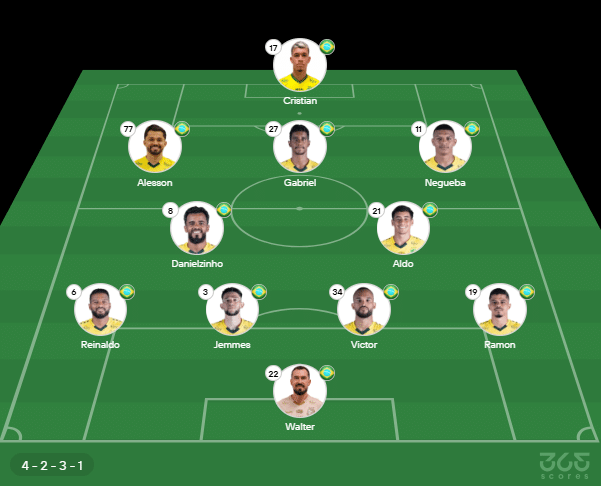 - Provável escalação do Mirassol: Walter; Ramon, Victor, Jemmes, Reinaldo; Aldo, Danielzinho, Gabriel; Negueba, Alesson, Cristian