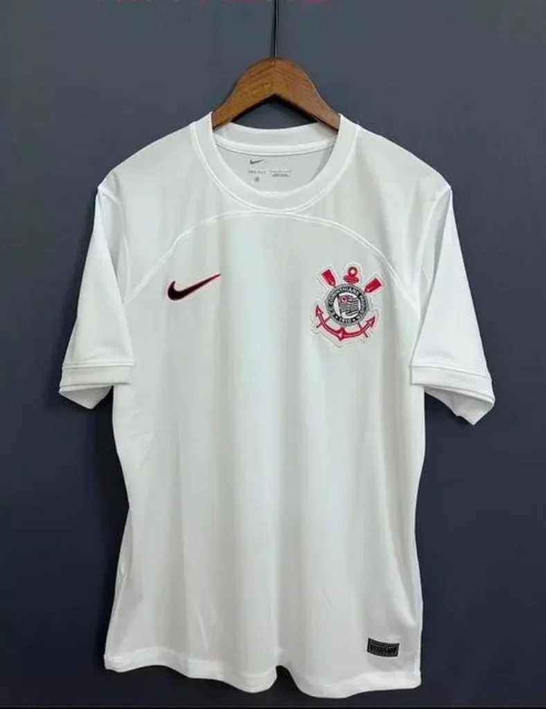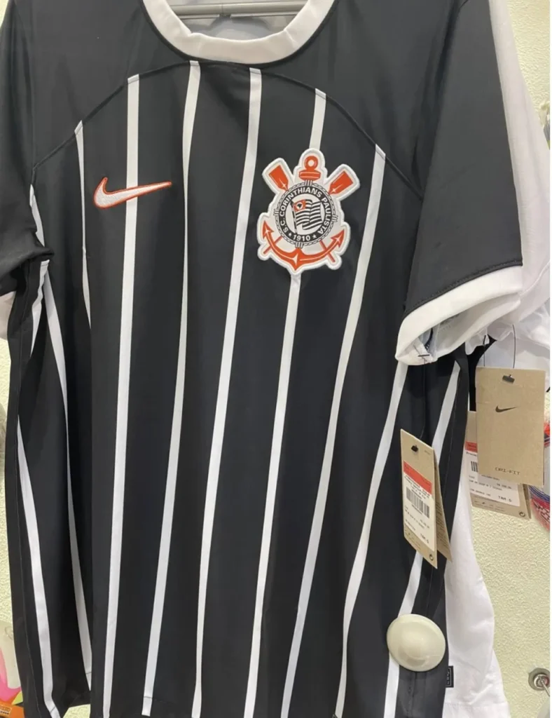Imagens das supostas novas camisas do Corinthians para a temporada 2023 vazaram nas redes sociais na noite desta quarta-feira (29). Os novos modelos apareceram em um shopping na zona sul de São Paulo, e as fotos divulgadas seriam os uniformes 1 e 2 do Timão.