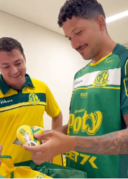 O volante Yuri Lima foi presenteado pelo Mirassol após a notícia da gravidez da sua namorada, a cantora Iza. O clube do interior paulista presentou seu jogador com um ‘kit torcida baby’, que conta com um par de sapatinhos e um body inspirado no uniforme da equipe, na core amarela com detalhes em verde.